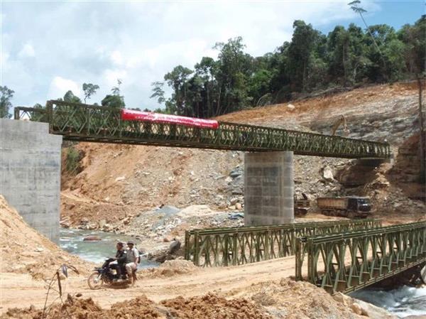 Temporary Bailey bridge in Cambodia