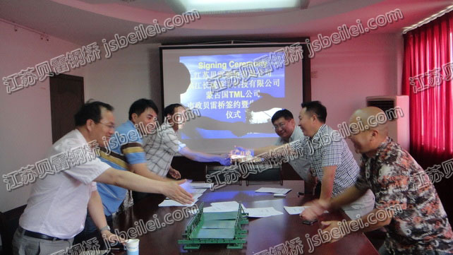 2013年7月9日,我公司联合镇江长城重工与蒙古国TML公司签订300米特大贝雷钢桥供货合同。