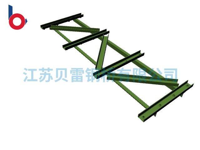 装配式公路钢桥由桁架式主梁、桥面系、联接系、构础四部分组成,并配有专用吊具。在车行道两侧,由每节长3米的桁架用销子连接主梁,主梁之间用横梁连接,每格桁架设两根横梁,每格桁架设4组纵梁,中间两组无扣纵梁,外侧两组有扣纵梁,在纵梁上铺设木质桥板,桥板两侧用缘材固定,桥两端设有端柱。可以把U型桥板直接铺在梁上。主梁经端柱支撑在桥座(座)和座板上,桥与出水处之间由桥头搭板连接,中间为无扣搭板,两侧为有扣搭板﹐搭板上铺设桥板,固定缘材。整个桥梁具有斜撑、抗风拉杆、支承架、联板等多种连接系构件,使桥梁形成稳定的空间结构。